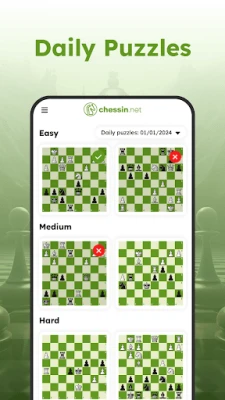 - Tens of puzzle books with 9 difficulty levels (chess steps) for everyone with FIDE Rating from 400 to 3000