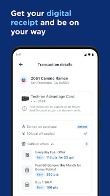 Use the Chevron app to pay for gas or diesel from the comfort of your driver’s seat for a seamless and simple experience at the pump! Also take advantage of the Chevron Texaco Rewards program to earn points on fuel and select in-store purchases for fuel discounts at participating stations. Where available, our Rewards program now includes the ExtraMile Rewards® program with new benefits and greater convenience. Must be 16 years or older to join.