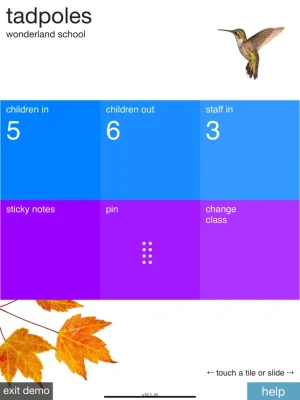 Tadpoles helps childcare directors and teachers manage their young classrooms. Save time and throw out that paper. Track attendance, naps, meals, and potty breaks for an individual or the entire classroom. Instead of writing the same thing on 20 daily reports, enter it once!