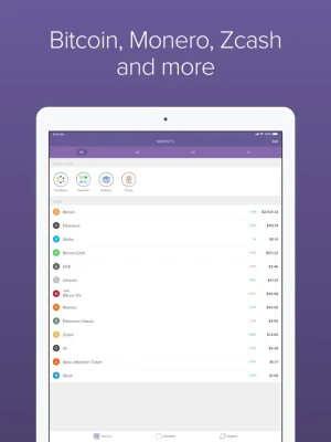 • Bitcoin (BTC), ethereum (ETH), bitcoin cash (BCH), ethereum classic (ETC), bitcoin SV (BSV), litecoin (LTC), Zcash (ZEC), monero (XMR), stellar (XLM), 0x (ZRX), Qtum (QTUM), EOS (EOS) and Basic Attention Token (BAT).
