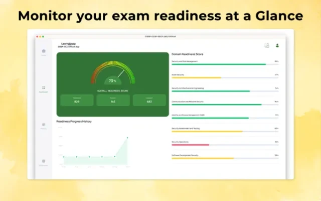 Find out how prepared you are for the real exam with our readiness score feature. Calculated based on your performance in practice tests, it tells you exactly where you stand and which areas you should focus on. The domain readiness scores allow you to pinpoint your weakest areas and work on them, ensuring that you are fully prepared for the real exam.