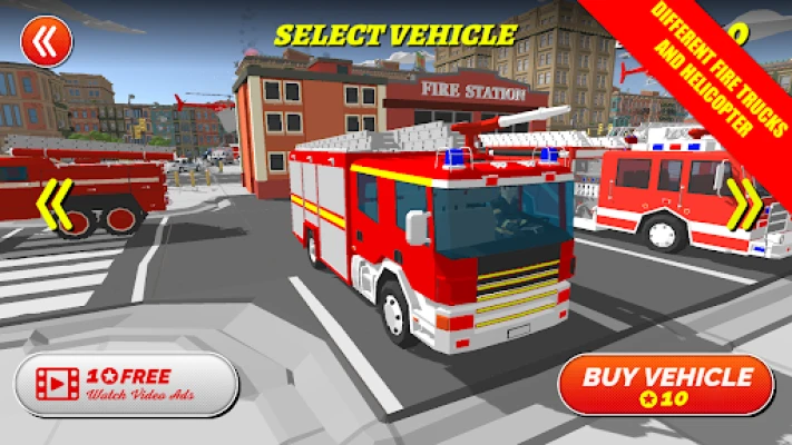 You can choose from a variety of fire trucks that vary in speed and volume of water. You will also find a first-person fire-fighting mode, so we can fully feel like a firefighter.
