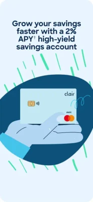 ‡ The Clair Savings Account is established by Pathward, N.A., Member FDIC. Interest is calculated on the Daily Balance of the Savings Account and is paid monthly. The interest rate paid on the entire balance will be 1.98% with an annual percentage yield (APY) of 2%. The interest rate and APY may change. The APY was accurate as of 11/04/22. No minimum balance necessary to open the Savings Account or obtain the yield. You must have or obtain a Spending Account in order to obtain and open a Savings Account, and you must be the primary accountholder of your Spending Account. Savings Account funds are withdrawn through the Spending Account, and transaction fees could reduce the interest earned on the Savings Account. Funds on deposit are FDIC-insured through Pathward, N.A., Member FDIC. For purposes of FDIC coverage limit, all funds held on deposit by the accountholder at Pathward, N.A., will be aggregated up to the coverage limit, currently $250,000.00.