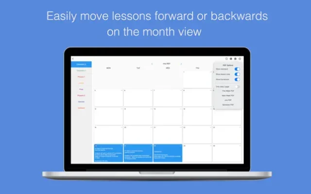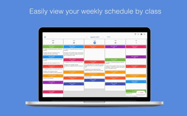 Class Planner (cloud) is a new release of the Class Planner app. This version stores data in the cloud instead of on device, so the app data is accessible from multiple devices such as a phone, an iPad and a MacBook computer. Your data automatically syncs from all your devices.