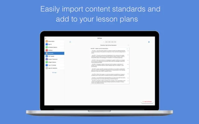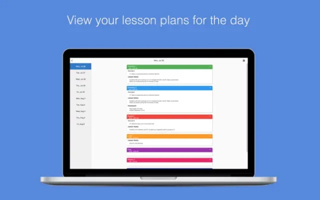 Class Planner allows teachers to easily keep a record of their lesson plans which include the standards, lesson notes, homework and an online web resources.