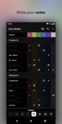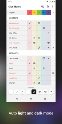 Easily take notes of your current game of Clue with: - a variety of symbols (used for your notes) - a sleek UI - a light/dark theme