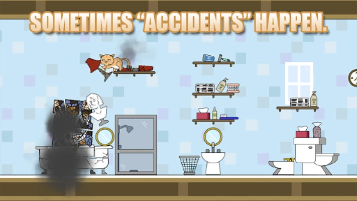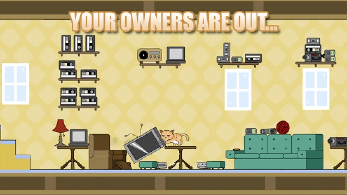 You are a cat. Your owners left you alone. Do as much damage as possible before they get back. Destroy four levels - the house, museum, school, and mall.