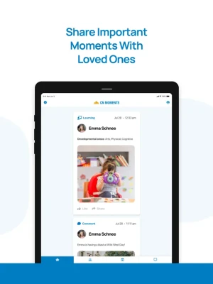 CN Moments is crafted exclusively for Childcare Network families, providing you with instant updates on your younger learner. As a parent, we know how important it is to stay in the loop about your child's day-to-day experiences at school. That's why we designed CN Moments to provide you with real-time updates on your child's well-being and educational progress. With this app, you can effortlessly stay connected with your child during school hours, no matter where you are or what device you’re on. Never miss a moment with reminders, notes, photos, and videos of your child’s activities as they happen.