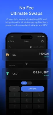 Engage in seamless cross-chain swaps amidst a vast liquidity pool of DEXs and bridges. Enjoy a fee-less swapping experience with Flashbots protection against sandwich attacks and MEV (Miner Extractable Value). What you see is what you get—no hidden charges!