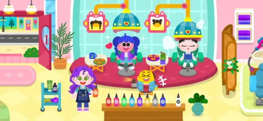 -Have fun at the hair salon, playground, grocery store, cafe, home, cave, beach, and camping site.