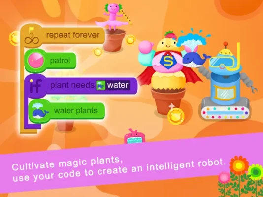 - Challenging fun scenarios. Children can use programming knowledge to solve puzzles.