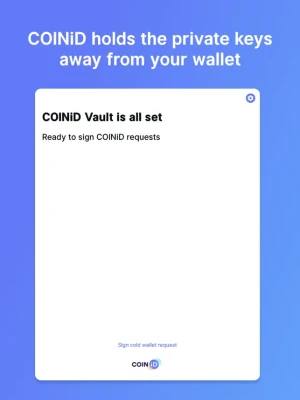 The COINiD Vault can be used to sign transactions for both Hot and Cold COINiD Wallet accounts. Install it locally and use it for your Hot Wallet or install it on a phone that you then setup as an offline device and use it for your COINiD Cold Wallet account.