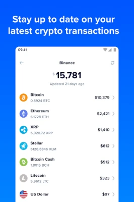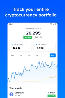 Get a clear picture of your crypto investments, including the current portfolio, your return on investment over time, and more.