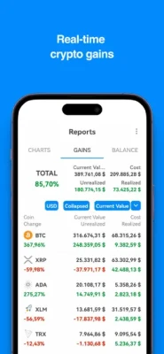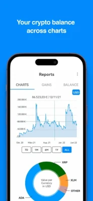 With the CoinTracking app, you can visually track your favorite cryptocurrencies with advanced charts and stats (e.g., portfolio distribution, historical balances) while being on top of actionable market indicators.