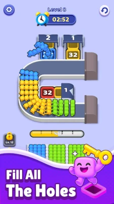 Jump into a bright, energetic world where timing, sorting, and smooth flow become a fun puzzle challenge. The conveyor belt keeps moving, the holes keep coming, and your colorful 3D crowd is ready to run. Tap at the right moment, match the colors, and fill every hole to clear the lane!
