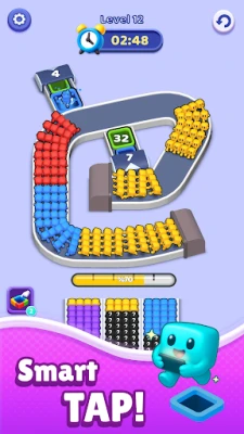 🎨 Tap and hold a crowd of characters to send them onto the moving belt