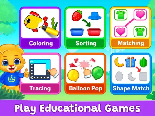 1. Painting - Kids love colouring games! Fill in the blank objects with all kinds of fun paint, then identify the objects one by one. A fun way for children to recognize colours and shapes.