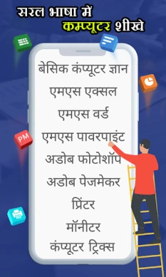 क्या आप कंप्यूटर सीखना चाहते हो ? इस दुनिये के बिज़नेस या नौकरी की कॉम्पिटिशन की रफ़्तार के साथ चलना चाहते हो तो आपको कंप्यूटर आना बहुत आनिवर्य है। इस अप्प की मदद से आप घर बैठे कंप्यूटर कोर्स कर सकते है. अप्प कही पर, किसी वक़्त कंप्यूटर सिख सकते हो। अब कंप्यूटर कोउसकोर्से पूरी तरह से हिंदी में है। अप्प कंप्यूटर के अलग अलग एप्लीकेशन (jese ki - ms office, excel, word, power-point, photoshop) को इस्तेमाल करना सीखे। जो आपको अपनी नौकरी या बिज़नेस में काम आ सके।