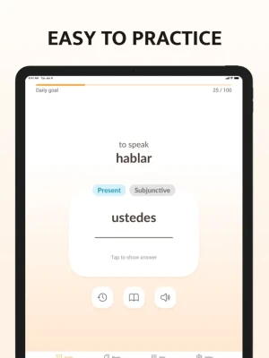 With ConjuGato, you don't need to type the answers – just think or say the correct verb and tap to check for yourself (you can enable the typing option in settings, if you wish). This is the perfect app for training your conjugation skills on the go, whenever you have a free minute.