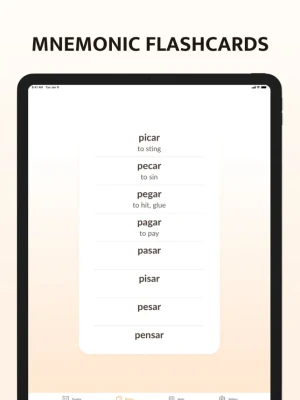 • Mnemonic flashcards to learn similar verbs together