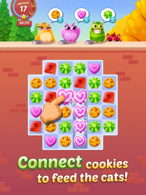 The neighborhood cats are hungry for cookies, and only YOU can help them! Join Belle, Ziggy, Smokey, Rita, Berry and countless other adorable kitties in a journey through pawsome new places, where cookies are just waiting to be eaten. Be ready to connect colorful cookies, fight off the big baddies, and befriend new meow-sicians in this FREE puzzle game that is the cat's pajamas!