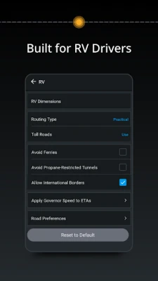 • Routes and directions designed for RVs based on your vehicle size
