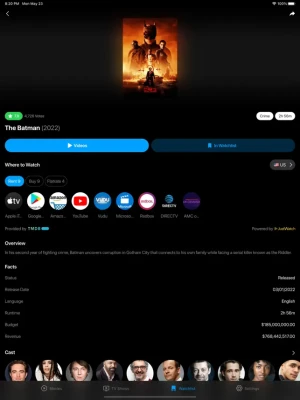 Get detailed information about any movie or TV show, from the basic facts, casts, reviews, exclusive videos, up to where to watch it.