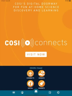 Check out the COSI app for fun at-home science discovery and learning! Every weekday, we provide exciting and engaging science through COSI videos and hands-on science you can try with your family at home through COSI Connects. Try a Science Challenge, participate in a Citizen Science activity, or take a virtual tour through the American Museum of Natural History Dinosaur Gallery.