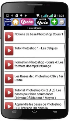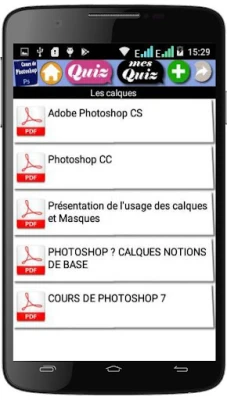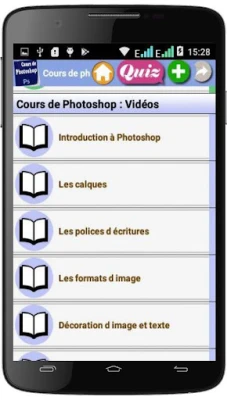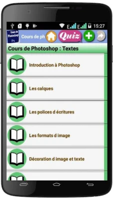 Cette application gratuite est une Bibliothèque dynamique alimentée par les meilleurs sites éducatifs français spécialisés dans des Cours de Photoshop.