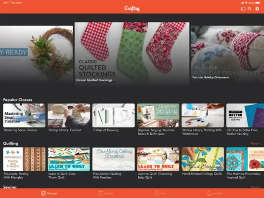 Whether you are just getting started with a craft, or looking to advance your skills, our world class instruction is here to help. With instruction on quilting, sewing, knitting, crotchet, baking, cooking, cake decorating, and more, Craftsy instructors guide and encourage you, empowering you to take your ideas from thought to action. With step-by-step video instruction, along with downloadable patterns and recipes, Craftsy is the place for creative connection with other like-minded makers. Whether you are looking for a new project, a specific technique, an advanced challenge or a "hey I'm just getting started" class, you'll find the instruction you need to turn ideas into projects you can be proud of. Welcome to Craftsy!