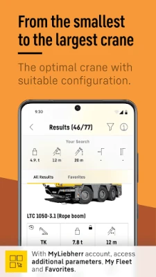 Register free of charge and without obligation in the MyLiebherr portal to gain access to the app's extended functions and thus make your crane selection even easier.