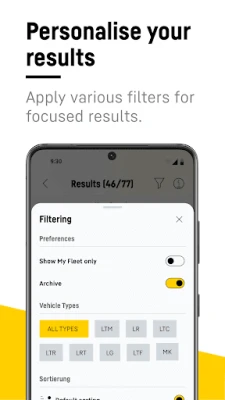 As a crane operator, for example, you can define your favourites and limit the results list to the cranes you use most frequently. This saves time and increases efficiency.