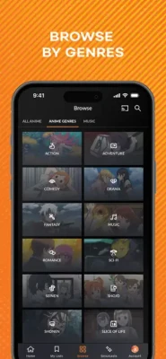 • Browse anime in every genre from action and adventure to romance and drama. Comedy, music, slice of life, supernatural, fantasy—the app has it all!