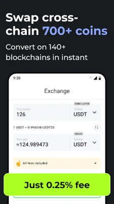 With our mobile app, you can buy Bitcoin instantly and swap it to more than 700 coins and tokens: Bitcoin (BTC), Ethereum (ETH), Binance Coin (BNB), Cardano (ADA), Dogecoin (DOGE), Monero (XMR), Ripple (XRP), Polkadot (DOT), Litecoin (LTC), Solana (SOL), Polygon (MATIC), Shiba Inu (SHIB), ERC-20, BEP-2 tokens, and more.