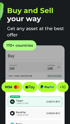 Buy Bitcoin instantly with credit card (via Simplex, Banxa, Topper, Transak, Moonpay), exchange it to 700+ coins like BTC, ETH, USDT and sell cryptocurrency.