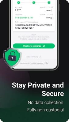 ChangeNOW is focused on safety and simplicity – the service is registration-free and non-custodial. It means that your crypto assets are never stored on some “account”. Directly send, directly receive. For more security, use a 4-character pin or authentication via touch id.