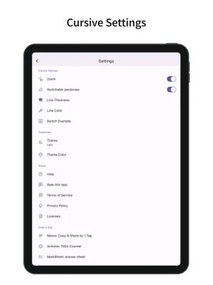 App for people who want to practice English cursive by tracing.Includes uppercase and lowercase alphabets and over 100 words.You can also add and practice your own words.
