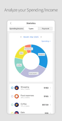 Receipts attachment on your spending history and memo function, writing the details ( time/date )