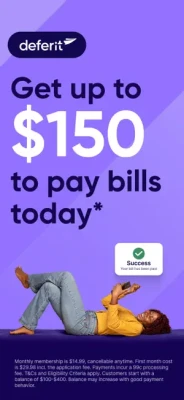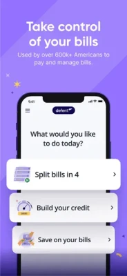 The Deferit “Split bills in 4” feature is available in select states. We will inform you, based on your address, whether the “Split bills in 4” option is available to you upon onboarding. Split bills in 4 is subject to eligibility and a down payment may be required. The Credit Builder feature, Bill Savings and our bill management platform are available in all states.