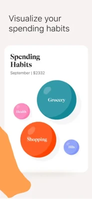 *******Visualize Your Spending HabitsFun, floating bubbles on the homepage card will help you understand where your money goes. Tap on one to expand the category and learn how much you spent this month, last month and what’s your top spend for this category.