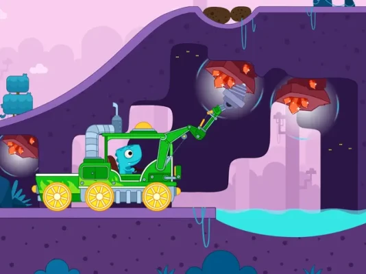 On the dino island, Rex dino Max is going to drive his excavator to complete missions! Whether in desert or in the forest, little Max is fearless! He need to dig treasures and diamonds, collect goods and overcome various obstacles! Watch his energy bar because if you don’t supplement energy with diamonds, his engineering truck will break down!