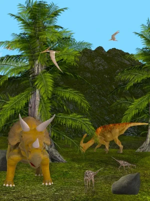 - Allosaurus, Archaeopteryx, Centrosaurus, Compsognathus, Dilong, Dilophosaurus, Diplodocus, Estemmenosuchus, Giganotosaurus, Gigantspinosaurus, Lambeosaurus, Maiasaura, Majungasaurus, Mononykus, Ouranosaurus, Pachyrhinosaurus, Prestosuchus, Psittacosaurus, Quetzalcoatlus, Rhamphorhynchus, Stegoceras, Suchomimus, Torosaurus, Udanoceratops.