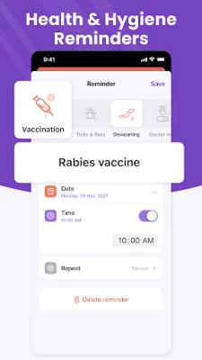 With the GoDog Health & Care Diary, you'll never forget to take care of your pet. Create reminders for vaccinations, medications, visits to the vet, and other important events in your dog's life and save a history of these events. Track the hygiene care of your doggy including bathing, teeth brushing, nail clipping, ear cleaning, etc. Define dog schedule and let the GoDog app remind you when the next action is due.