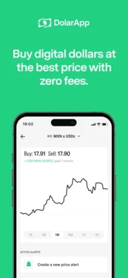 Buy digital dollars at the interbank rate, and hold them in your DolarApp account. Check current and historical prices in real-time in the app. Open an account in seconds to protect yourself from volatility and forget about peso devaluation. Send and receive digital dollars instantly and free of charge to any contact who has a DolarApp account. Each digital dollar in your DolarApp account can be exchanged for one U.S. dollar at a U.S. bank.