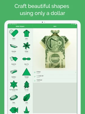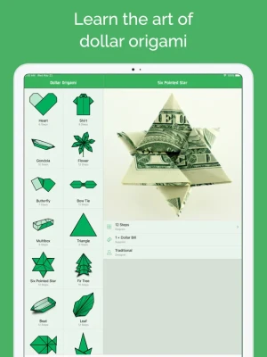 Dollar Origami teaches you to craft beautiful shapes using only a dollar bill. Fold bills to create a memorable cash gift, leave someone a very special tip, or to entertain your friends. A bill worth only dollar suddenly becomes a priceless artistic creation!
