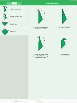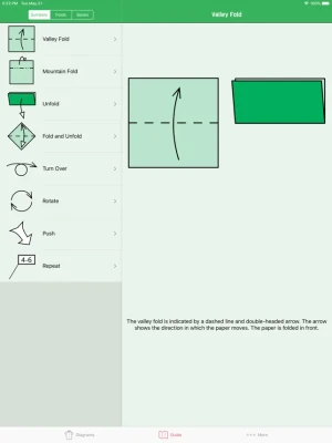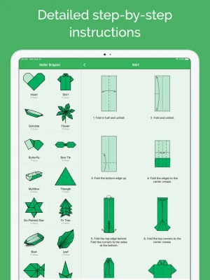 All 20 origami designs include detailed, step-by-step instructions and high-quality photos of the finished product. Each type of origami fold is shown in a precise, visual guidebook included right in the app.