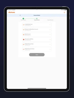 Note: your property must be partnered with Domuso to pay. Options may vary based on apartment community.