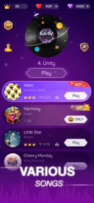 Follow the beats and control the moving direction of the light ball by tapping the screen. Listen to the rhythms and play to the music so that you can get a higher score and more diamonds. Move your fingers to experience the thrills of compact rhythms.