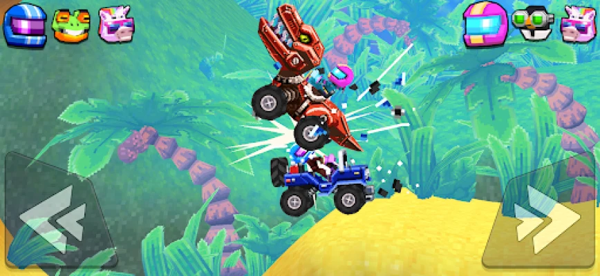 Assemble your squad of car driving heroes from a roster of familiar faces and new challengers, some with unique hero powers! Play with over-the-top battle cars, from monster trucks to mechanised dinosaurs, every vehicle brings along its own flavor of destructive physics fun.