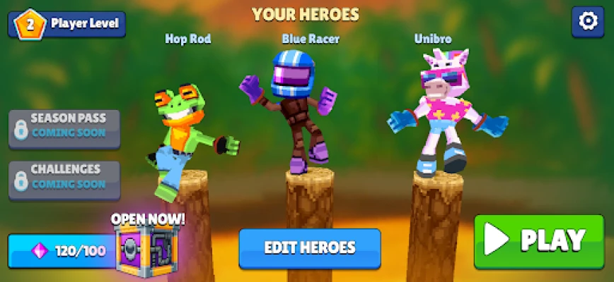 Crashing isn’t enough anymore. Hero characters have special powers to play with. Launch, blast, or smash your way to victory, and turn up the heat in intense 1v1 car on car fights.